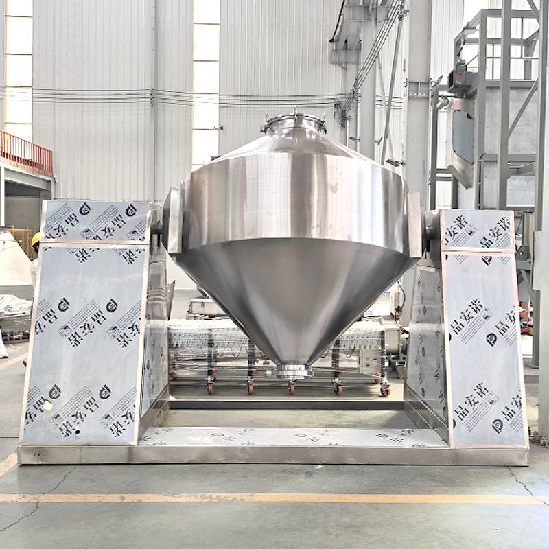 डबल-कोन मिक्सर एक कुशल पाउडर मिक्सिंग उपकरण है। इसका मुख्य भाग दो शंक्वाकार सिलेंडरों से बना है जो एक साथ जुड़े हुए हैं और एक मोटर द्वारा एक क्षैतिज अक्ष के चारों ओर घुमाए जाते हैं। इसका सीलिंग डिज़ाइन धूल के रिसाव को प्रभावी ढंग से कम करता है और इसका व्यापक रूप से दवा, भोजन और रासायनिक इंजीनियरिंग जैसे उद्योगों में पाउडर और दानेदार सामग्री को मिलाने के लिए उपयोग किया जाता है। उपकरण का क्षमता चयन लचीला है, संचालन सरल है, मिश्रण की एकरूपता अधिक है, अवशिष्ट सामग्री की मात्रा कम है, और संरचनात्मक डिज़ाइन सफाई और रखरखाव के लिए सुविधाजनक है, जो बैच उत्पादन में उच्च मिश्रण दक्षता और उच्च स्वच्छता दोनों की आवश्यकताओं को पूरा करता है।