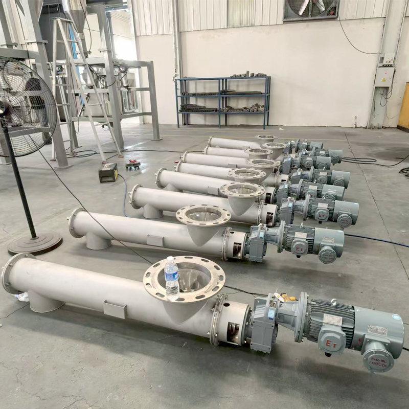 1. स्क्रू कन्वेयर रिबन मिक्सर से मिश्रित सामग्री को एक क्षैतिज स्क्रू कन्वेयर तक पहुंचाता है
