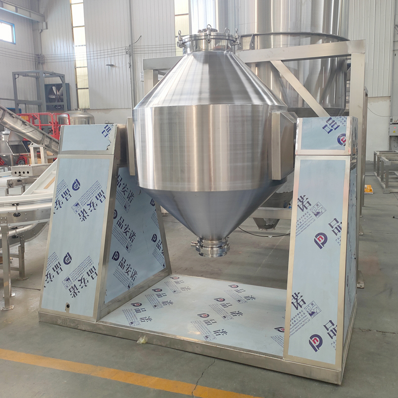 The double cone mixer is a highly efficient powder mixing equipment with a main body of a double cone-shaped sealed container. It features high mixing efficiency, good uniformity, no dead corners for mixing inside the equipment, and is easy to clean, which can reduce material residue.