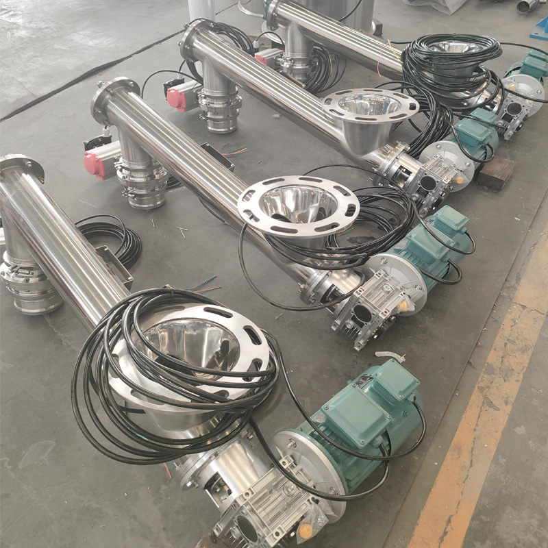 1. स्क्रू कन्वेयर रिबन मिक्सर से मिश्रित सामग्री को एक क्षैतिज स्क्रू कन्वेयर तक पहुंचाता है