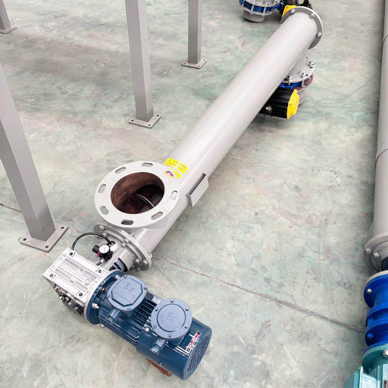 1. स्क्रू कन्वेयर रिबन मिक्सर से मिश्रित सामग्री को एक क्षैतिज स्क्रू कन्वेयर में ले जाता है